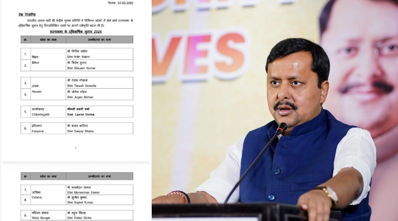 Patna, March 3, 2026: The Bharatiya Janata Party (BJP) has released its list of candidates for the upcoming Rajya Sabha elections, announcing two names from Bihar—Nitin Nabin and Shivesh Kumar Ram.
