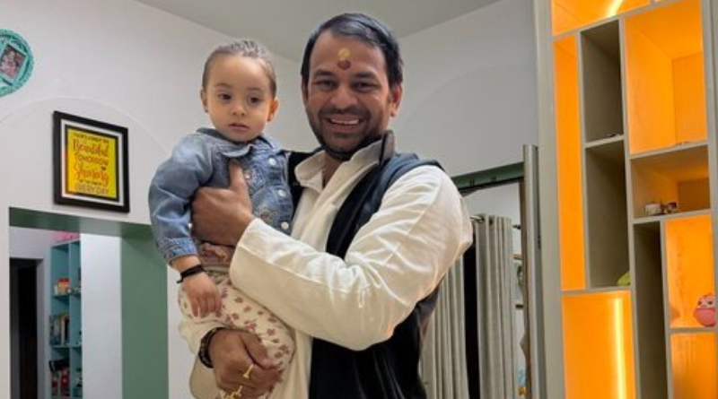 Amid the political exchanges, a touching personal moment was witnessed when Tej Pratap Yadav held Tejashwi’s daughter and his niece, Katyayani, in his hands.
